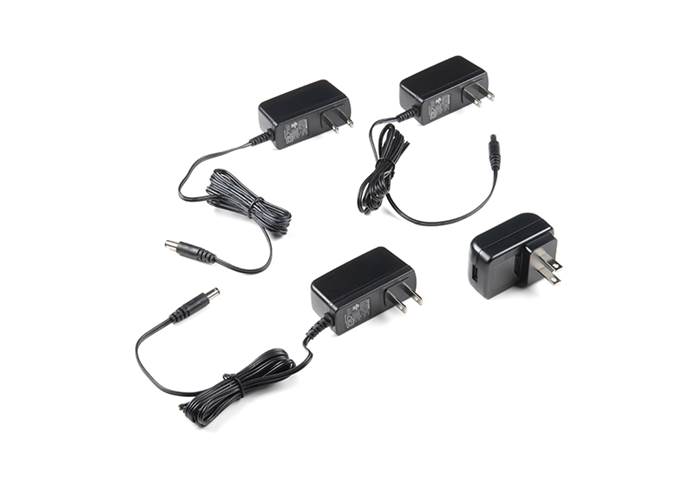 There are a lot of different development boards requiring different input voltages. The SparkFun Power Supply Sample Kit provides you with a sampling of the power supplies that we offer to power your next project. Included in this kit are four different wall adaptor power supplies, two at 5V, one at 9V, and one at 12V.