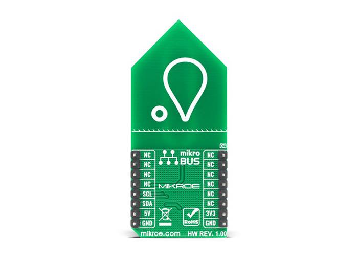 This Click board™ uses the I2C communication interface and can be supplied and interfaced with both 3.3V and 5V supply voltage. The on board SMD jumper labelled as VCC SEL allows voltage selection for interfacing with both 3.3V and 5V microcontrollers. More information about integrated circuits on this board can be found in the attached datasheets. However, this Click board™ comes equipped with a library that contains easy to use functions and a usage example that may be used as a reference for the development.