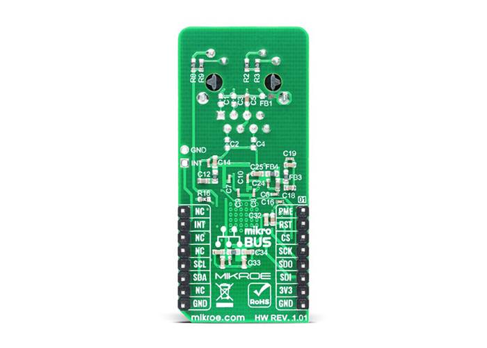 This Click board™ operates only with a 3.3V logic voltage level. The board must perform appropriate logic voltage level conversion before use with MCUs with different logic levels.