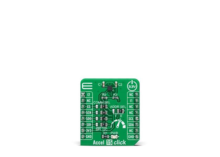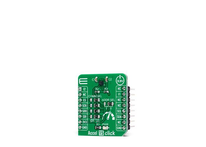 MIKROE Accel 15 Click is a compact add-on board that contains a longevity acceleration sensor. This board features the BMA490L, a high-performance 16-bit digital triaxial acceleration sensor with extended availability of up to ten years from Bosch Sensortech. It allows selectable full-scale acceleration measurements in ranges of ±2g, ±4g, ±8g, and ±16g in three axes with a configurable host interface that supports both I2C and SPI serial communication and with intelligent on-chip motion-triggered interrupt features. Intelligent signal processing and evaluation in the accelerometer ASIC enables advanced gesture recognition for numerous industrial IoT applications where low power consumption is vital. This Click board™ is suitable for home appliances, power tools, and other industrial products whose lifetime is essential.