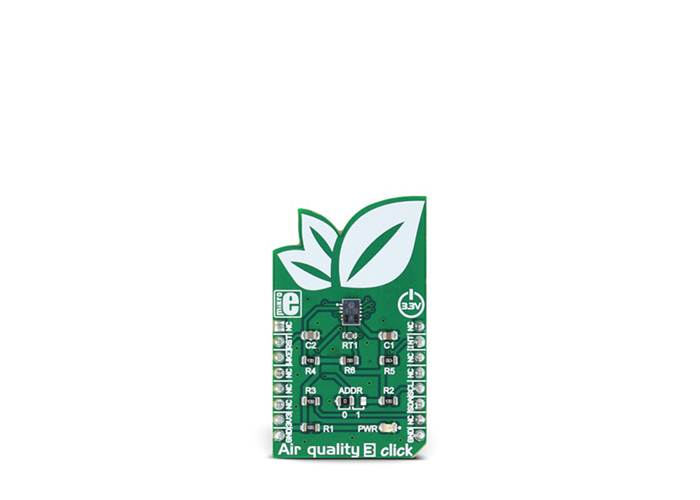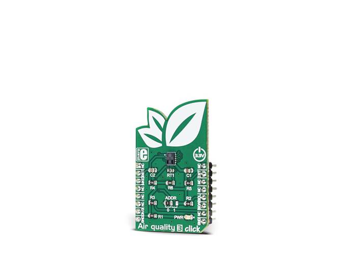 MIKROE Air quality 3 Click is the air quality measurement device, which is able to output both equivalent CO2 levels and total volatile organic compounds (TVOC) concentration in the indoor environment.