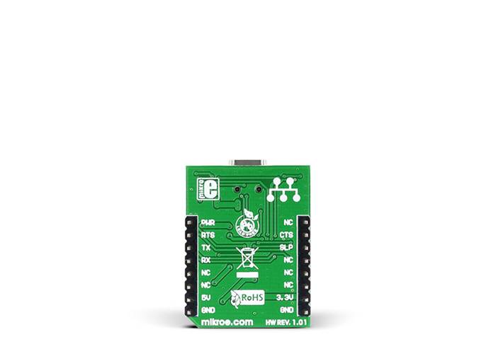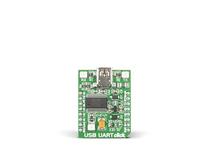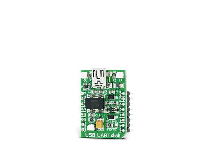 MIKROE USB UART Click offers a USB to asynchronous serial data (UART) interface, allowing the microcontroller based designs to communicate with the personal computer, in a very simple way.
