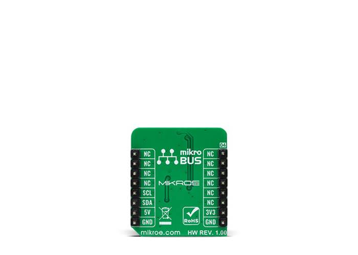 This Click board™ can operate with both 3.3V and 5V logic voltage levels selected via the VIO SEL jumper. This way, it is allowed for both 3.3V and 5V capable MCUs to use the I2C communication lines properly. However, the Click board™ comes equipped with a library that contains easy-to-use functions and an example code that can be used, as a reference, for further development.