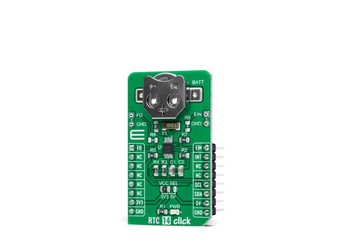 MIKROE RTC 14 Click is a compact add-on board that measures the passage of time. This board features the ISL1221, a low-power RTC with battery-backed SRAM and event detection from Renesas.