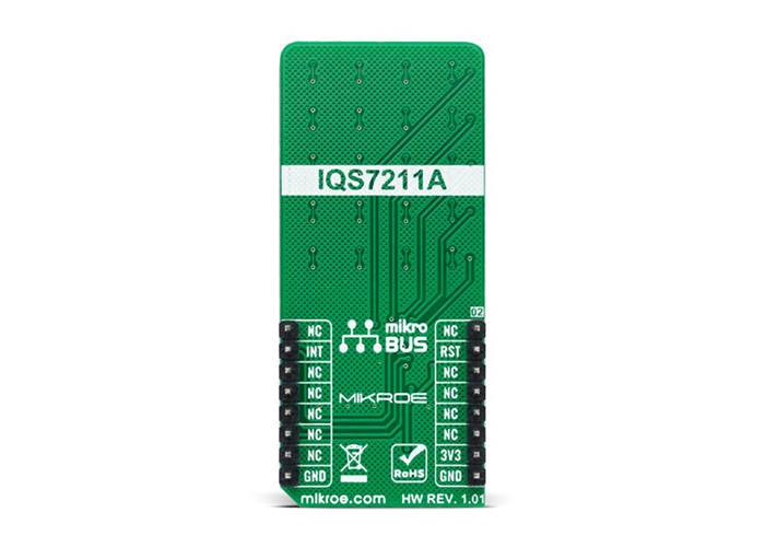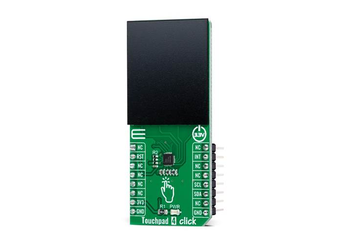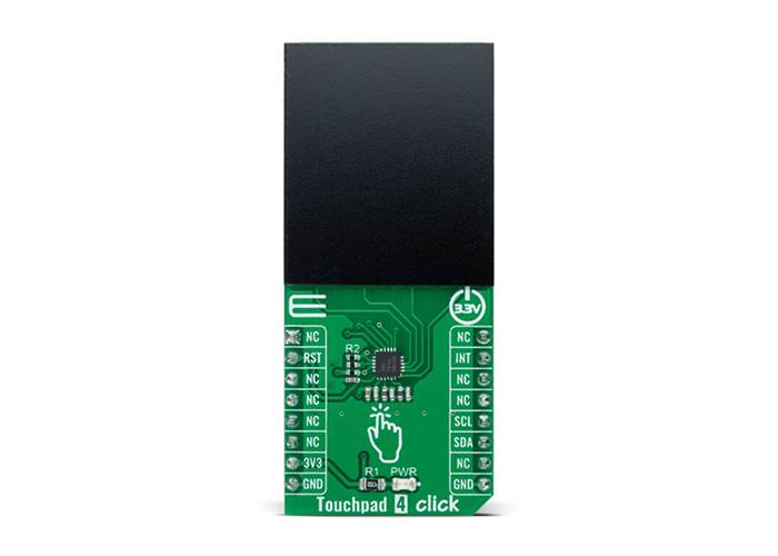 Touchpad 4 Click as its foundation uses the IQS7211A, a tiny trackpad controller designed for multitouch applications using a projected capacitance touch panel from Azoteq. The IQS7211A is part of Azoteq’s latest range of ProxFusion combination sensors, a multi-sensor technology that offers combinations of capacitive sensing, Hall-effect, inductive, and temperature sensing on a single integrated circuit. It allows users to control a trackpad of up to 32-channels and offers high resolution and fast response, low power consumption, and long-term activation supported by environmental tracking. It is also characterized by embedded gesture engine recognition for simple gestures (tap, swipes, hold) and built-in noise detection and filtering.