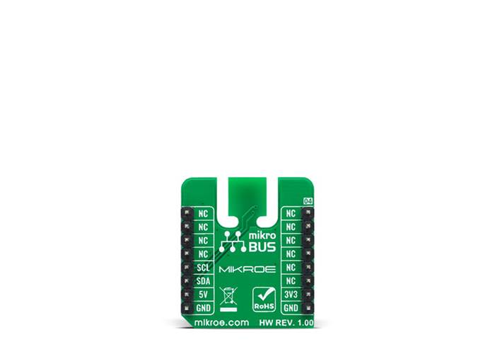 This Click board™ can operate with both 3.3V and 5V logic voltage levels selected via the VCC SEL jumper. This way, it is allowed for both 3.3V and 5V capable MCUs to use the I2C communication lines properly. However, the Click board™ comes equipped with a library containing easy-to-use functions and an example code that can be used, as a reference, for further development.
