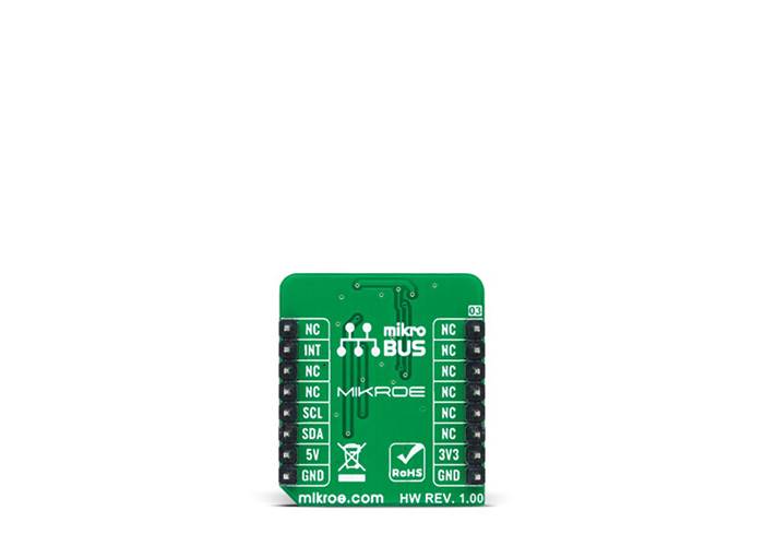 This Click board™ can operate with both 3.3V and 5V logic voltage levels selected via the VCC SEL jumper. This way, it is allowed for both 3.3V and 5V capable MCUs to use the I2C communication lines properly. However, the Click board™ comes equipped with a library containing easy-to-use functions and an example code that can be used, as a reference, for further development.