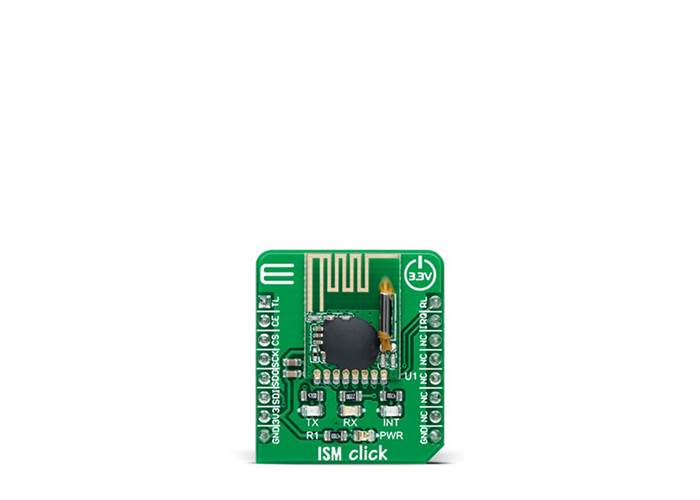 ISM Click is a compact add-on board that contains a complete wireless RF digital data transceiver. This board features the RFM75, a low-power, high-performance 2.4GHz GFSK transceiver from RF Solutions.