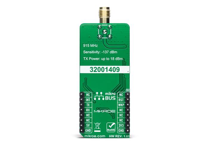 LR 5 Click features the SMA antenna connector with an impedance of 50Ω, so it can be equipped with the appropriate antenna.