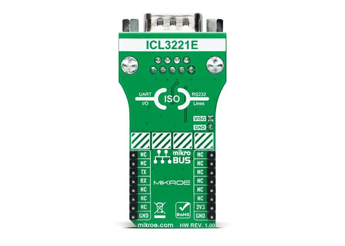 RS232 Isolator 2 Click as its foundation uses the ICL3221, a 3.3V powered RS232 transmitter/receiver that provides ±15kV ESD protection on its RS232 pins from Renesas. It features an automatic power-down function that occurs when the RS232 cable is removed and conserves system power automatically and power-up again when a valid RS232 voltage is applied to any receiver input. It also ensures data rates greater than 250kbps even at worst-case load conditions.