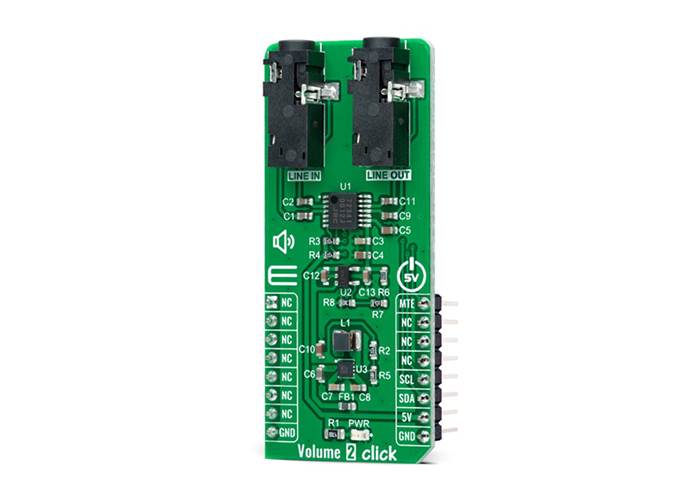 Volume 2 Click as its foundation uses the NJU72341, a 2-channel I2C configurable electronic volume IC with an external mute control from NJRC. The NJU72341 operates as an audio signal processor with many characteristics useful in an audio application, such as low noise typical of 2.0µVrms and low distortion of 0.002%. It controls two independent audio channels with a vast volume control range from 0 to 95dB with 1dB step offering zero-cross detection to protect pop noise. That's why this Click board™ is suitable for stereo and multi-channel audio systems.