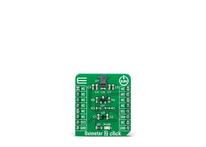 Oximeter 2 Click is a compact add-on board suitable for measuring blood oxygen saturation. This board features the ADPD144RI, a PPG optical sensor for photoplethysmography detection of blood oxygenation from Analogue Devices. It combines LED emitters and sensitive 4-channel photodiodes with a custom ASIC that provides optical isolation between the integrated LED emitters and the detection photodiodes to improve the signal-to-noise ratio (SNR). PPG detection of blood oxygenation is achieved by synchronous detection in red and infrared wavelengths. Synchronous measurement allows rejection of both DC and AC ambient light interference with low power consumption. This Click board™ makes it an excellent choice for applications such as optical pulse oximetry and health monitoring.