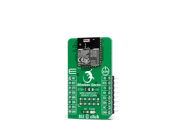 BLE 9 Click is based on the BGM220P, an RF performance Bluetooth Low Energy solution that provides BT/BLE connectivity for any embedded application from Silicon Labs. It supports Bluetooth 5.2, direction-finding, and Bluetooth Mesh Low Power Node protocols to deliver industry-leading accuracy. It comes with worldwide regulatory certifications and a fully-upgradeable software stack as advanced development and debugging tool. The BGM220P module combines the EFR32BG22 wireless System on a Chip (SoC), required decoupling capacitors and inductors, 38.4 MHz and 32.768 kHz crystals, RF matching circuit, and an integrated ceramic onboard chip antenna.