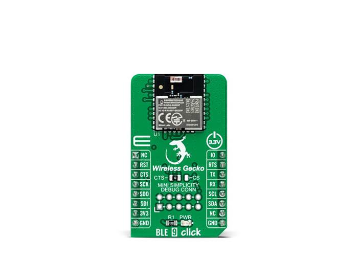 BLE 9 Click is a compact add-on board that provides BT/BLE connectivity for any embedded application. This board features the BGM220P, an RF performance Bluetooth Low Energy solution for IoT developers from Silicon Labs. Based on the EFR32BG22 SoC, the BGM220P enables Bluetooth Low-Energy (BLE) connectivity while delivering RF range and performance, firmware updates, enhanced security features, and low power consumption. It is optimised for wireless performance supporting Bluetooth 5.2, direction-finding, and Bluetooth Mesh Low Power Node protocols to deliver industry-leading accuracy. This Click board™ is suitable for wireless networking in applications such as portable medical, connected home, asset tags and beacons, and more.