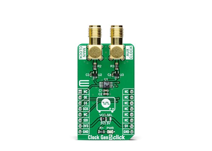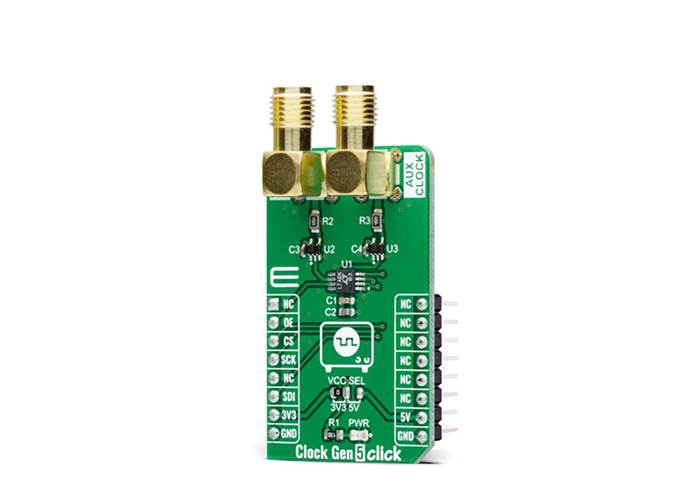 Clock Gen 5 Click is a compact add-on board that contains a digital programmable oscillator solution.