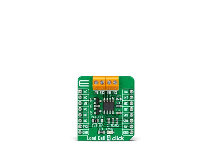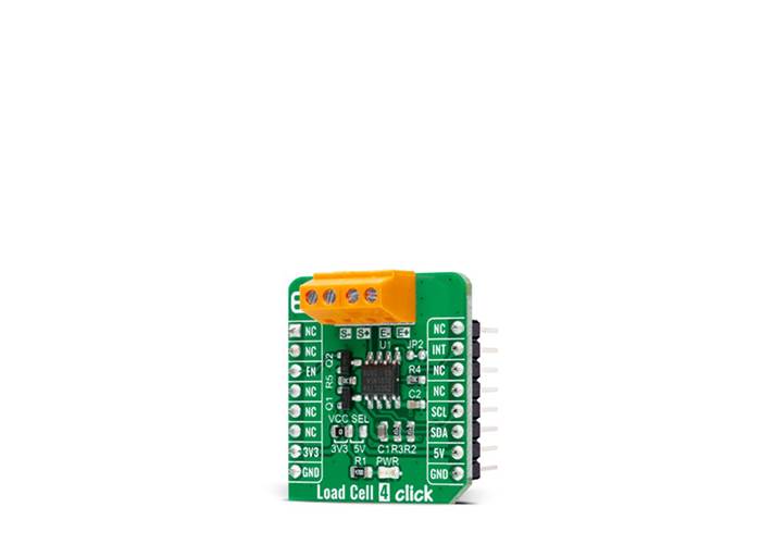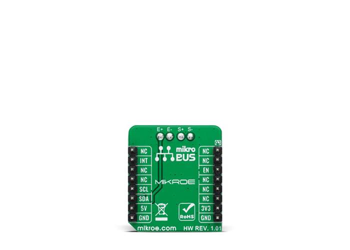 Load Cell 4 Click is a compact add-on board that contains a resistive sensor signal conditioner with a fast power-up data output response.