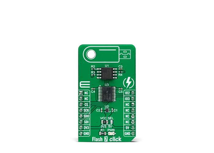 Flash 7 Click is a compact add-on board that contains a high-performance memory solution. This board features the GD25LQ16C, a high-performance 16Mbit SPI NOR Flash Memory solution with advanced security features from GigaDevice Semiconductor. It is specifically designed to meet the different needs in various electronic applications in terms of density, performance, reliability, and security while providing low power consumption. It requires only 6 signals to communicate between the MCU and the memory, thus reduces the design complexity and offers a reduction in board space and total system cost. This Click board™ provides a storage solution for systems with limited space in various embedded applications.