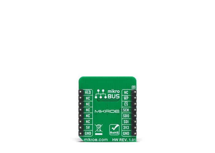 EEPROM 7 Click communicates with MCU using the SPI serial interface that supports the two most common modes, SPI Mode 0 and 3, with a maximum SPI frequency of 8 MHz. In addition to the SPI communication, the EEPROM 7 Click also has two additional pins used for Write Protection and HOLD function routed to the RST and PWM pins of the mikroBUS™ socket.