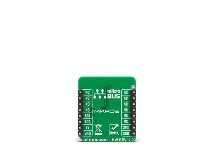 This Click board™ is designed to be operated with both 3.3V and 5V logic voltage levels that can be selected via VCC SEL jumper. This allows for both 3.3V and 5V capable MCUs to use the I2C communication lines properly. However, the Click board™ comes equipped with a library that contains easy to use functions and an example code that can be used as a reference for further development.