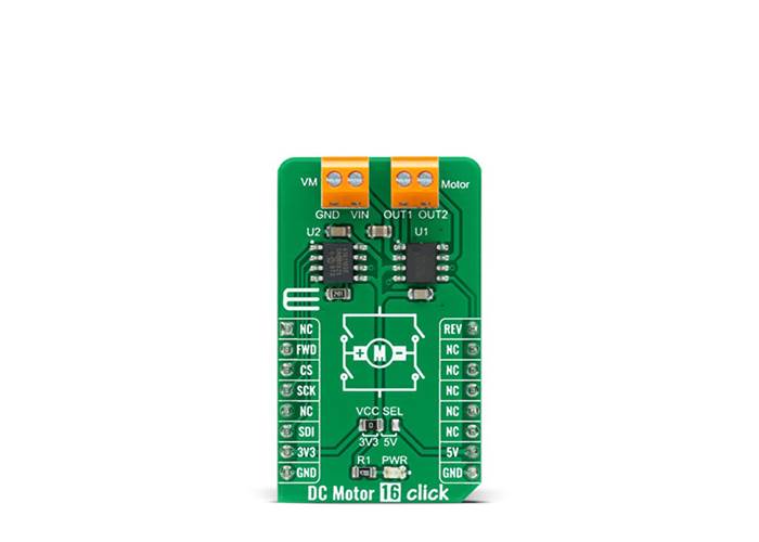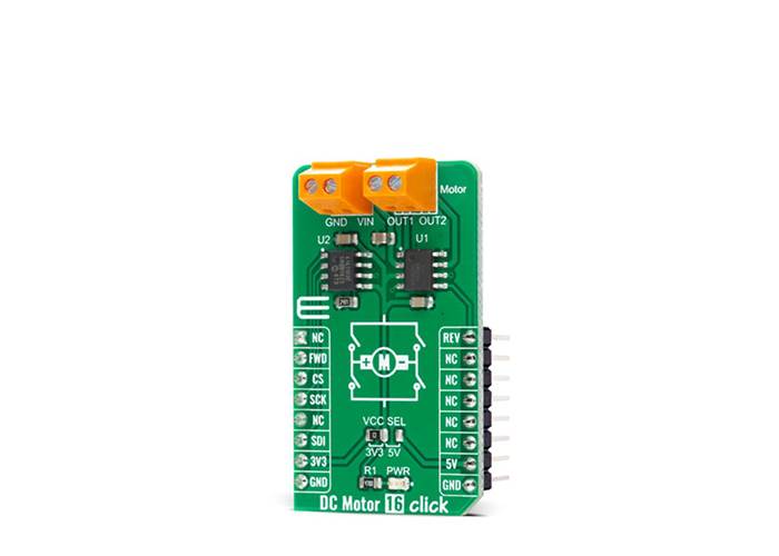 DC Motor 16 Click is supported by a mikroSDK compliant library, which includes functions that simplify software development.