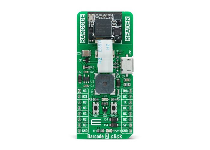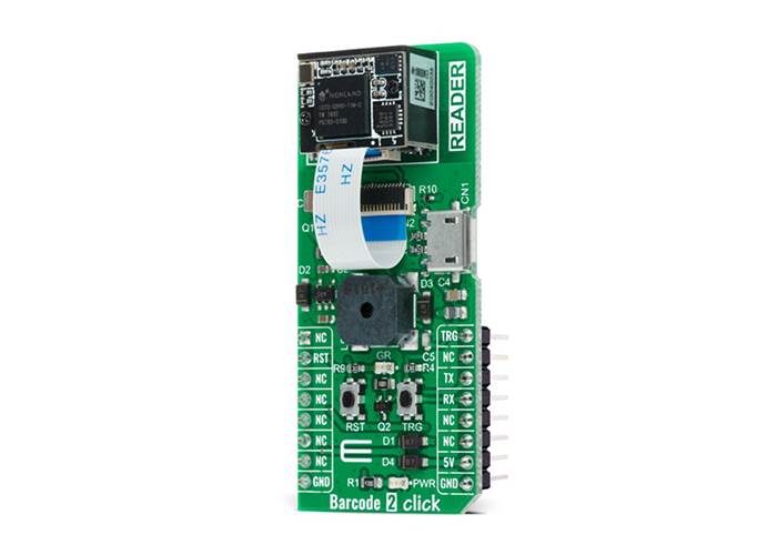 Barcode 2 Click is an adaptor add-on board that contains a computerized image recognition system that is compliant with a wide range of different 1D and 2D barcode protocols.