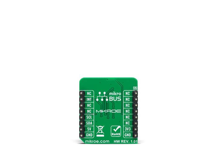 This Click board™ is designed to be operated with both 3.3V and 5V logic levels that can be selected via VCC SEL jumper. This allows for both 3.3V and 5V capable MCUs to use the I2C communication lines properly.