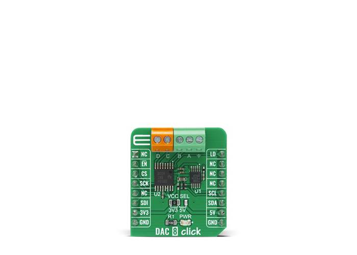 DAC 8 Click is supported by a mikroSDK compliant library, which includes functions that simplify software development.