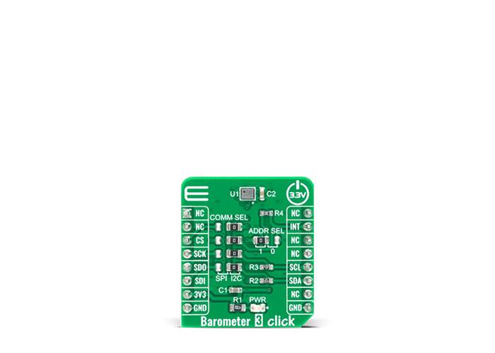 Barometer 3 Click is a compact add-on board for applications which require digital barometric air pressure measurement. This board features the DPS368, a digital barometric air pressure sensor from Infineon.