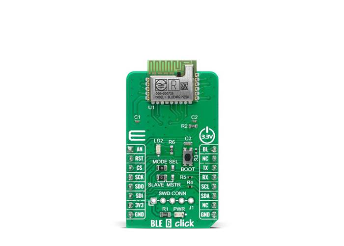 BLE 6 Click is a Bluetooth low energy system-on-chip application processor certified module, compliant with BT specifications v5.0 and BQE qualified.