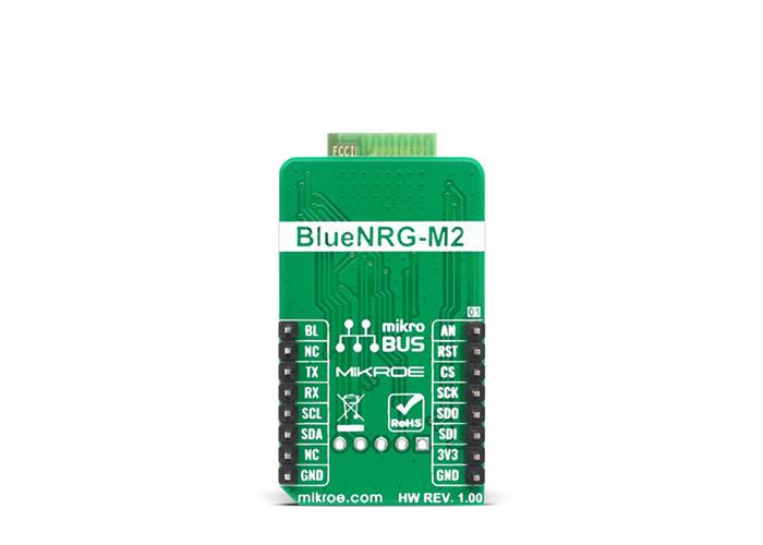 BLE 6 Click uses the BlueNRG-M2, a Bluetooth low energy application processor module compliant with Bluetooth® v5.0. The BlueNRG-M2 module has been designed around the ST. BlueNRG-2 SoC where its Cortex-M0 core can execute both Bluetooth protocols and customer application. Optimised memory architecture includes 256 kB of Flash memory and 24 kB of ultra-low-leakage RAM (with full data retention). A complete power-optimised Bluetooth stack library provides: