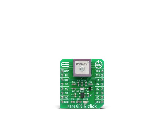 Nano GPS 2 Click operates with received signal levels down to ‐167dBm and can be affected by high absolute levels of RF signals out of GNSS band, moderate levels of RF interference near the GNSS band, and by low‐levels of RF noise in GNSS band. Uses a standard UART port and besides the commonly used UART RX, TX, RTS, and CTS Nano GPS 2 Click have also FON, and WKP pins, which are routed to the PWM and AN pins of the mikroBUS™ socket, respectively.