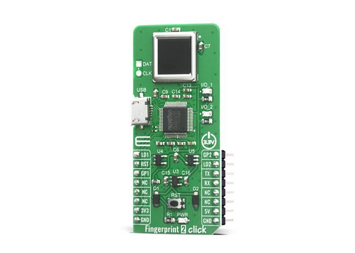The Fingerprint 2 Click has stable performance and simple structure. The simplified functions for faster and easy development include fingerprint comparison, image scanning transmission, search, registered fingerprint storage and system unique internal code protection mechanism. The fingerprint comparison program can register at most 24 fingerprints, the comparison speed is fast and the correct rate is very high.