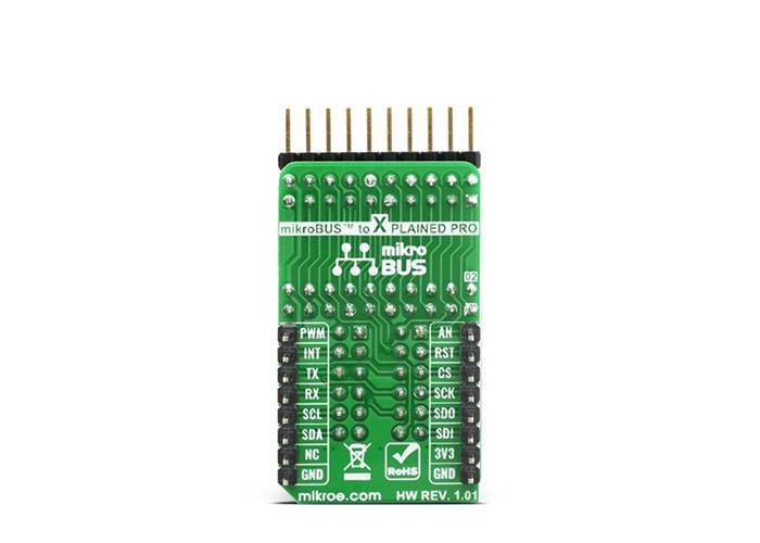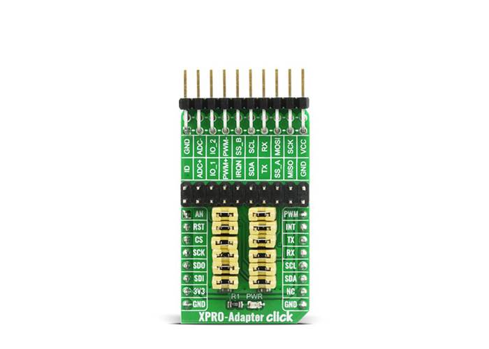 XPRO-Adaptor Click is an adaptor board for connecting Microchip Xplaned Pro expansion boards with hundreds of mikroBUS™ based host boards. The Xplaned Pro expansion header is standardized 20 pin connector which is allowing connection of many Microchip/exAtmel expansion boards. This Click also has duplicated Xplaned Pro and mikroBUS™ headers if reconfiguring is needed for individual boards or pinouts. By using XPRO-Adaptor Click you can now use Microchip add-on boards on mikroBUS™ without additional wiring.