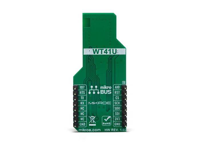 Bluetooth 2 Click features WT41u, a long range class 1, Bluetooth® 2.1 + EDR module from Silicon Labs. WT41u is a highly integrated and sophisticated Bluetooth® module, containing all the necessary elements from Bluetooth® radio and a fully implemented protocol stack. Therefore WT41u provides an ideal solution for developers who want to integrate Bluetooth® wireless technology into their design with limited knowledge of Bluetooth® and RF technologies. WT41u optimised for long range applications is available with an integrated chip antenna.