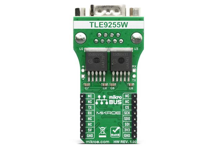 CAN 2 FD Click features TLE9255W a CAN protocol controller a part of the Infineon standard HS CAN transceiver family and provides beside CAN partial networking functions also a CAN FD capability up to 5 MBit/s in HS CAN networks. Configured as a partial networking HS CAN transceiver the TLE9255W can drive and receive CAN FD messages. It can also be used to block the payload of CAN FD messages. This CAN FD tolerant feature allows the usage of microcontrollers in CAN FD networks, which are not CAN FD capable. The two non-low power modes (Normal-operating Mode and Receive-only Mode) and the two low power modes (Sleep Mode and Stand-by Mode) provide minimum current consumption based on the required functionality.
