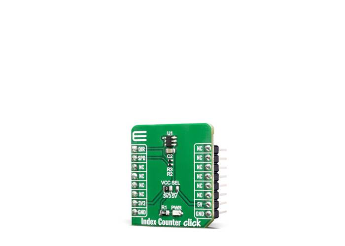 Index Counter Click is a simple prototyping high precision Hall-Effect switch solution with direction detection. This board is hosting TLE4966K an integrated circuit dual Hall-effect sensor from Infineon.