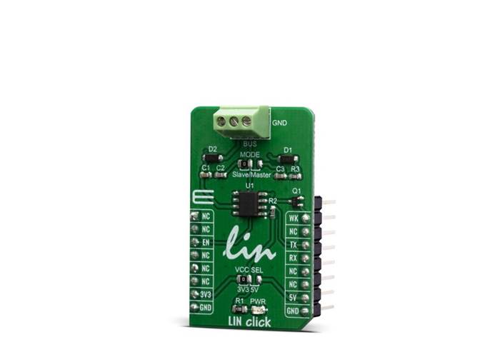 LIN or Local Interconnect Network is a protocol used for communicating between components in vehicles. These days cars have hundreds of sensor applications to measure things like temperature, pressure, air flow, speed, etc. All these applications need to communicate with the main system. The LIN Click is based on the TLE7259-3GE, LIN transceiver from Infineon Technologies with integrated wake-up and protection features. It is designed for in-vehicle networks using data transmission and it operates as a bus driver between the protocol controller and the physical bus of the LIN network. Compliant to all LIN standards and with a wide operational supply range the TLE7259-3GE can be used in all automotive applications.It can be used with CAN (Controller Area Network), but LIN is more cost-effective for simple sensor networks in vehicles.