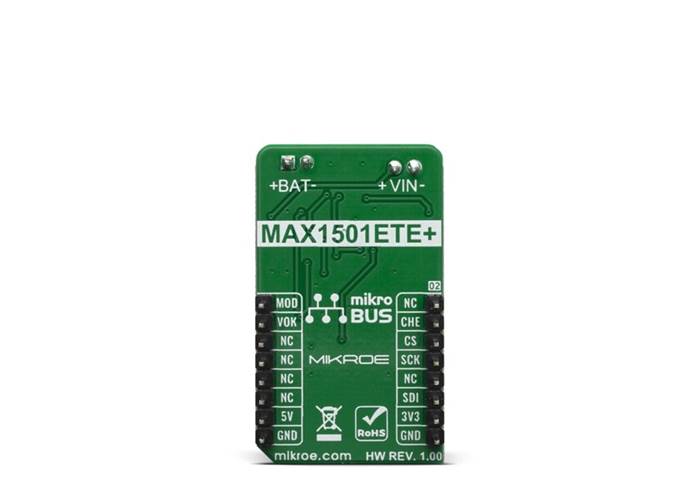 The MAX1501 IC is designed with reliability in mind: the IC prevents draining the battery below the critical level, protects it from overheating (if thermistor is used), offers prequel charging (for deeply depleted batteries), features an overvoltage protection, charging status monitoring and so on. The Click board™ itself is equipped with a set of indicators used to monitor both charging process and power distribution.