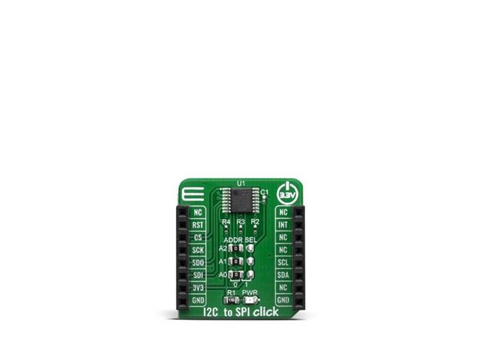 I2C to SPI Click is an all-in-one solution which allows serving as an interface between a standard I2C-bus of a microcontroller and an SPI bus, which allows the microcontroller to communicate directly with SPI devices through its I2C-bus.