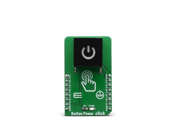Button Power Click is a very interesting interactive gadget on a Click board™. It is an integrated capacitive touch sensor display in the form of a button.