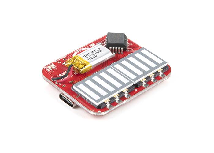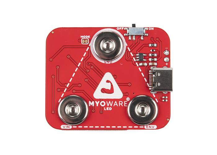 Each board comes with a 40mAh single cell, lithium polymer (LiPo) battery soldered to the board. Recharge the battery through the USB Type C connector and its dedicated LiPo charging circuit set to a charge rate of 40mA. This board also includes status LEDs for charging (CHG, FULL, and power (VIN)). Connecting the MyoWare 2.0 Muscle Sensor to battery power allows for a cleaner signal while also eliminating the possibility of creating a dangerous current path to the power grid. Use it to gauge how hard you’re working a muscle during a workout, as a teaching tool, or add some myoelectric flair to your Halloween costume!